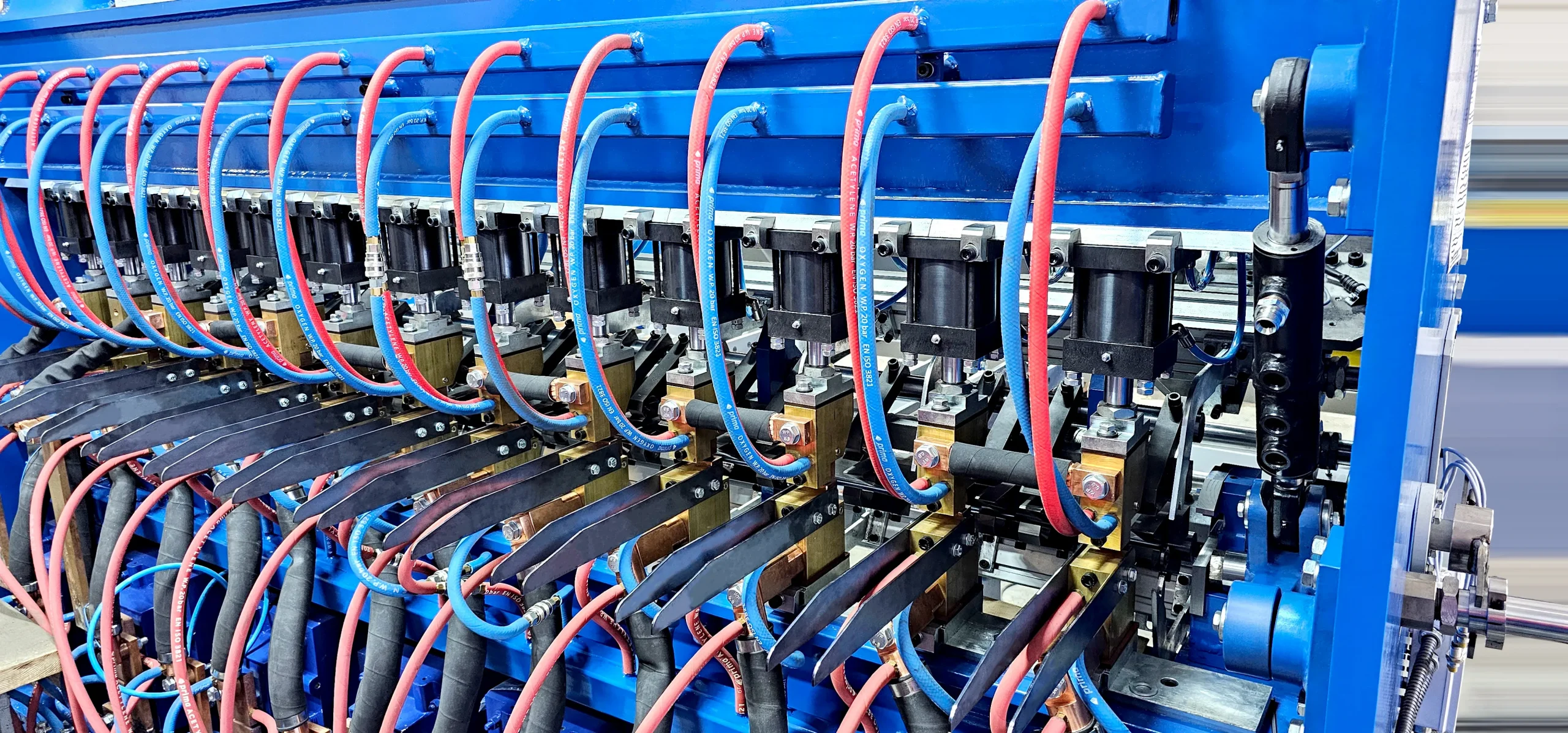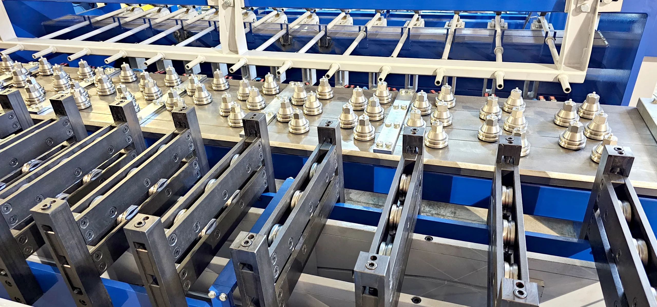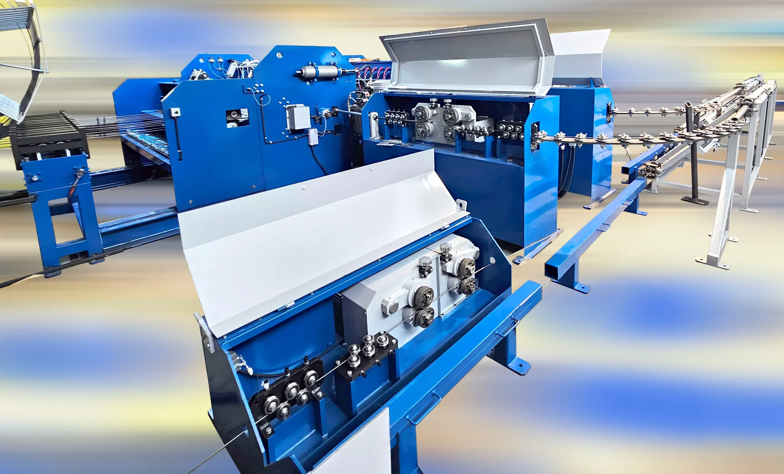 Lignes de soudage de treillis métalliques Lignes automatiques de soudage pour armatures en échelle Machines automatiques pour entretoises Lignes pour poutres en treillis Lignes de tréfilage Machines de redressage Machines de soudage de profilés en U Machines de pliage d’étriers Machines complémentaires