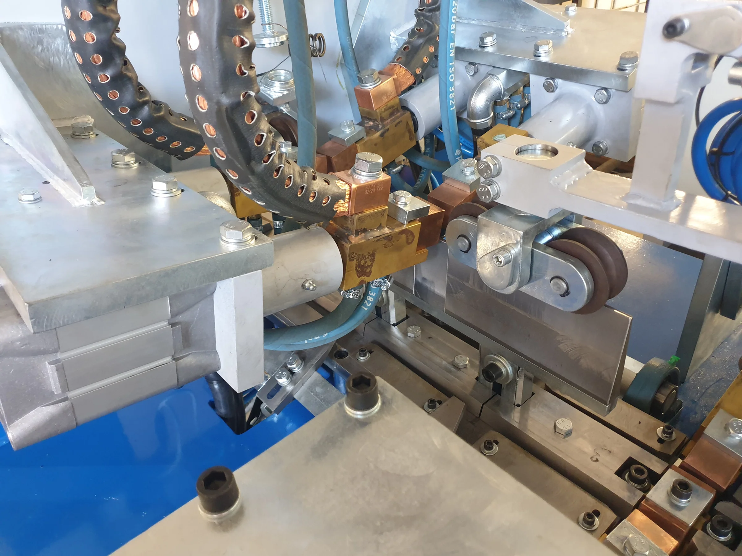 The machine allows transformer operation individually or simultaneously, optimizing welding performance for different wire combinations and production requirements.