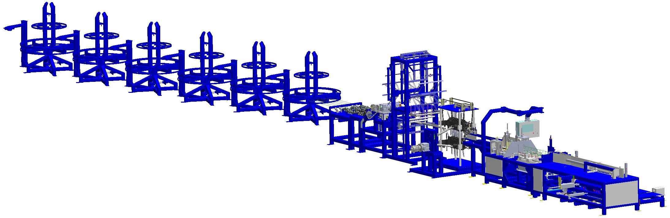 For producing mesh spacers. Operates at a speed of 30m per minute.