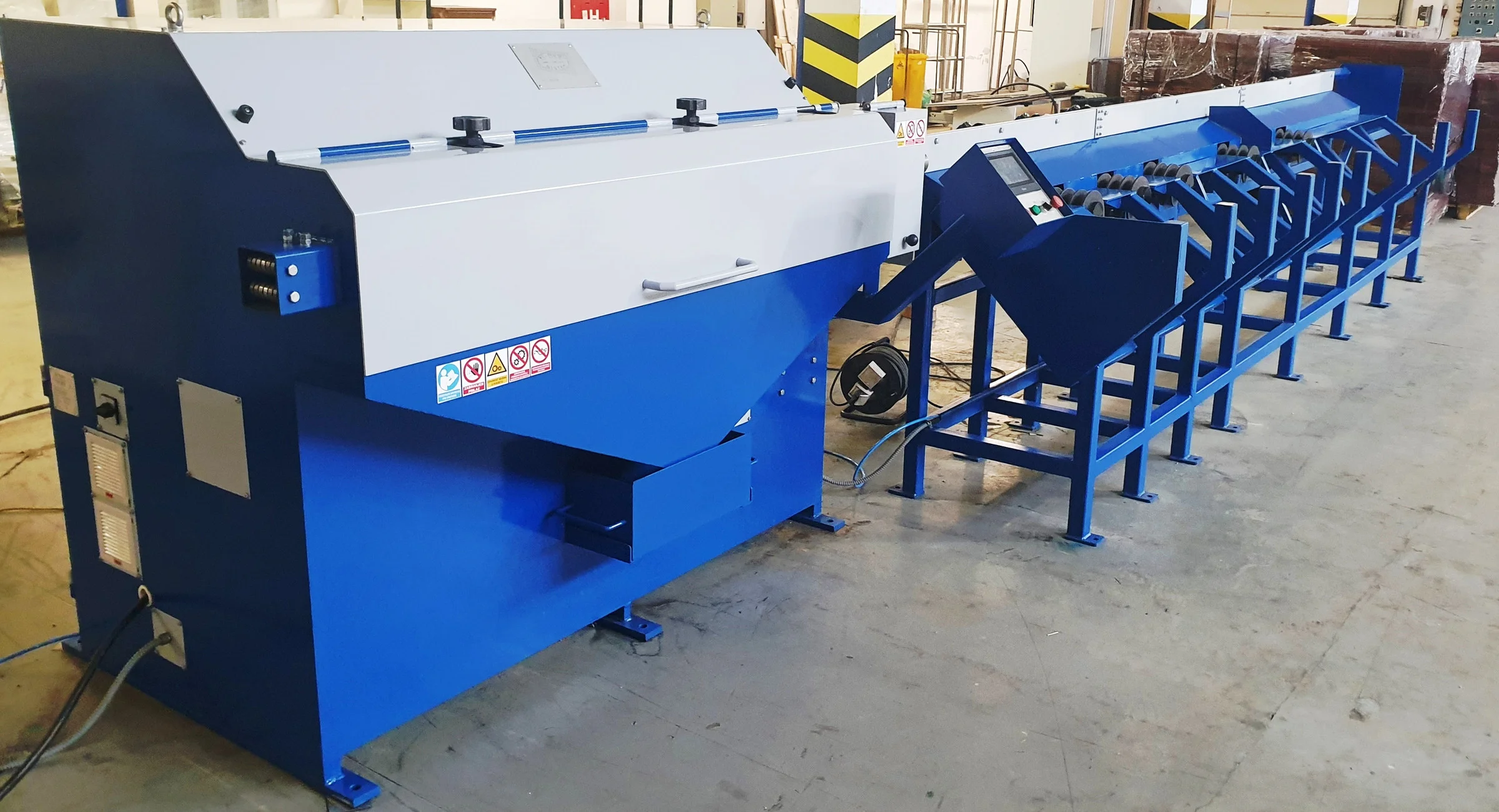 PLC control and servo-driven flying shears enable precise wire length programming of up to 12m, ensuring clean cuts, repeatable accuracy, and smooth high-speed operation.