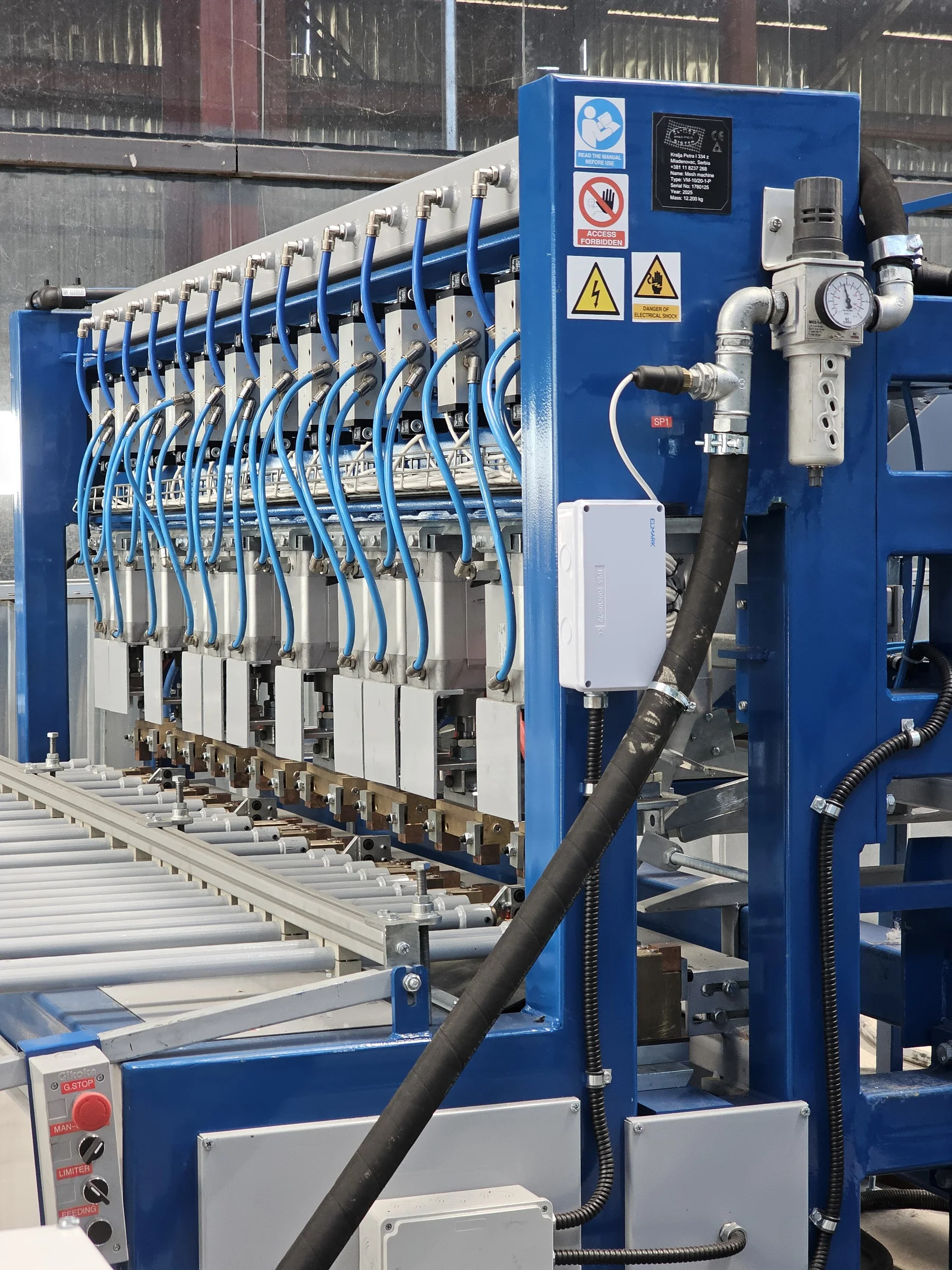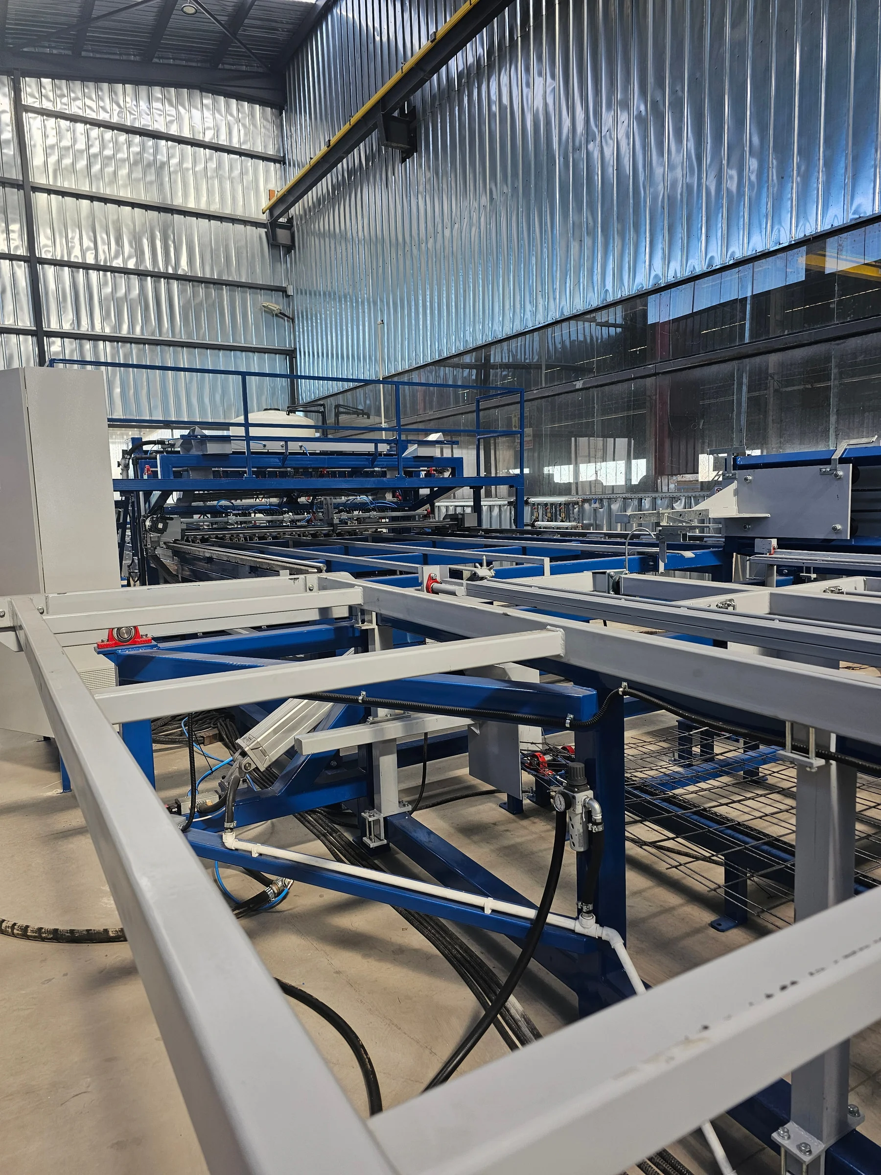 The VM-10/25-1-P-2.5M is a high-performance pre-cut mesh welding line designed for precise and efficient production of large-format welded mesh panels. With PC-controlled operation and pre-cut bar feeding for both line and cross wires, it ensures excellent flexibility, consistent panel geometry, and reliable output for demanding reinforcement applications.