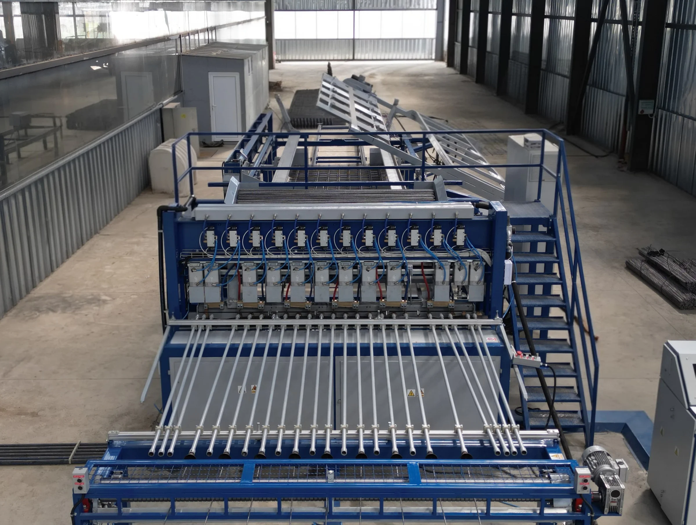 With a welding speed of 100 cross wires per minute and mesh dimensions up to 6000 × 2500 mm, the machine is ideal for efficient production of large reinforcement panels.