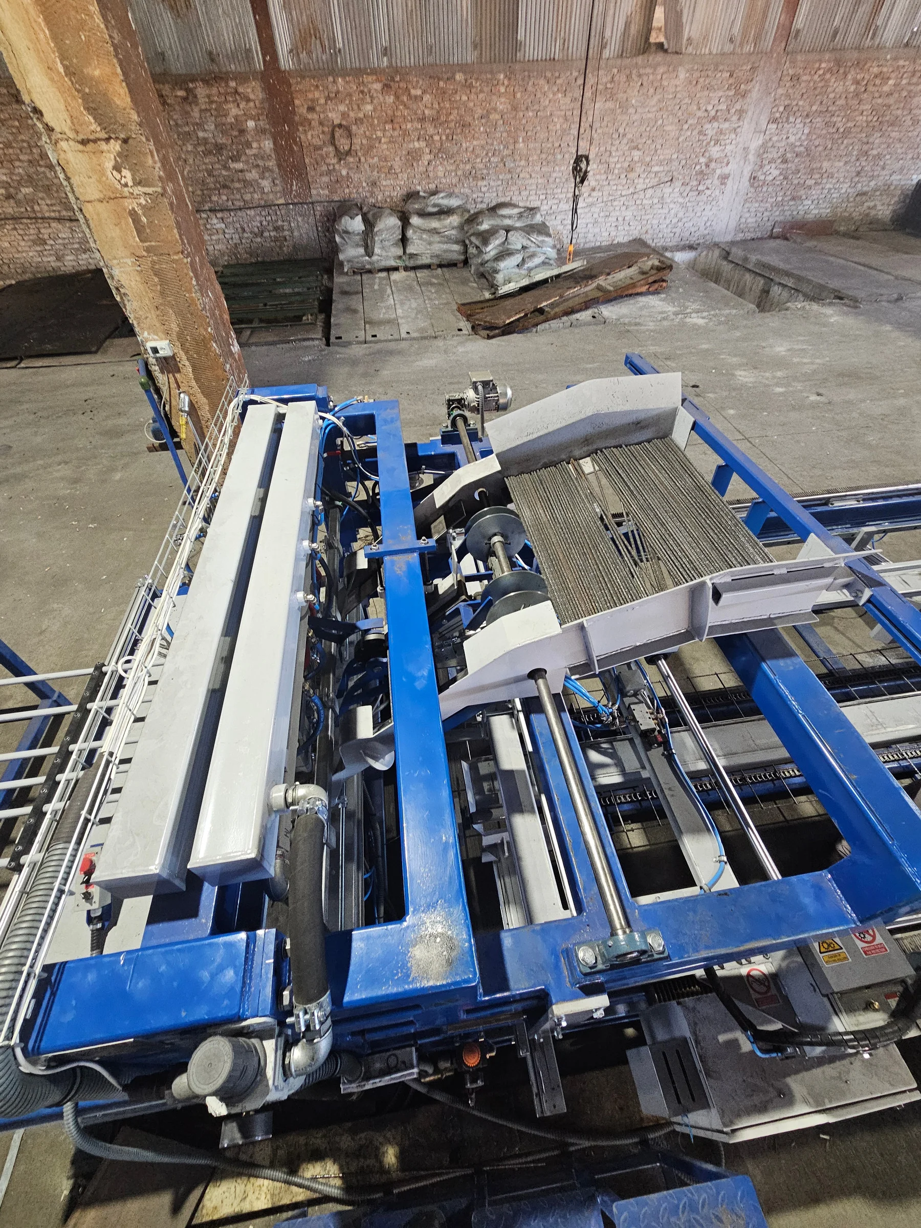Our pre-cut mesh welding machine is a compact, PC-controlled system powered by 3 × 75 kVA, with 11 kW drawing motors and a 3 × 400 VAC, 50 Hz electrical supply. It is designed for mesh dimensions up to 6000 × 1500 mm, processing wire diameters from 4 to 10 mm, with adjustable line and cross wire spacing from 100 to 200 mm. With a welding speed of 60–80 cross wires per minute, machine dimensions of 23,000 × 3,200 × 1,900 mm, and operation by a single worker, it delivers efficient, precise, and space-optimized production for pre-cut mesh panels.