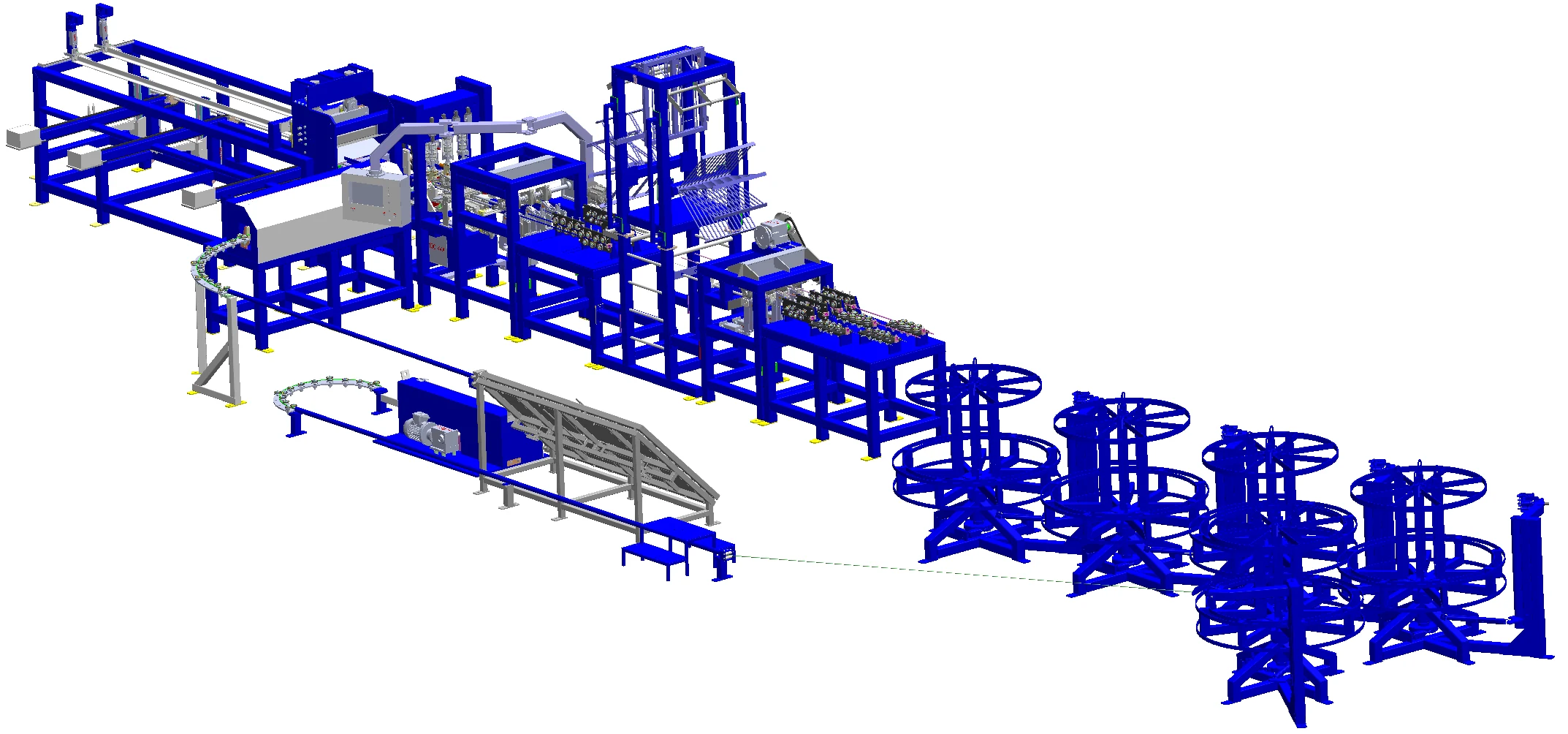 Uzdužne i poprečne žice se odmotavaju iz kotura, obezbeđujući kontinuiran i efikasan proces proizvodnje.